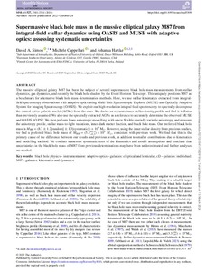 The massive elliptical galaxy M87 has been the subject of several supermassive black hole mass measurements from stellar dynamics, gas dynamics, and recently the black hole shadow by the Event Horizon Telescope. This uniquely positions M87 as a benchmark for alternative black hole mass determination methods. Here, we use stellar kinematics extracted from integral-field spectroscopy observations with adaptive optics using Multi Unit Spectroscopic Explorer (MUSE) and Optically Adaptive System for Imaging Spectroscopy (OASIS). We exploit our high-resolution integral field spectroscopy to spectrally decompose the central actice galactic nuclei (AGNs) from the stars. We derive an accurate inner stellar-density profile and find it is flatter than previously assumed. We also use the spectrally extracted AGNs as a reference to accurately determine the observed MUSE and OASIS AO PSF. We then perform Jeans anisotropic modelling, with a new flexible spatially variable anisotropy, and measure the anisotropy profile, stellar mass-to-light variations, inner dark matter fraction, and black hole mass. Our preferred black hole mass is MBH = (8.7 ± 1.2[random] ± 1.3[systematic]) × 109 M⊙. However, using the inner stellar density from previous studies, we find a preferred black hole mass of MBH = (5.5+0.5−0.3) × 109 M⊙, consistent with previous work. We find that this is the primary cause of the difference between our results and previous work, in addition to smaller contributions due to kinematics and modelling method. We conduct numerous systematic tests of the kinematics and model assumptions and conclude that uncertainties in the black hole mass of M87 from previous determinations may have been underestimated and further analyses are needed.