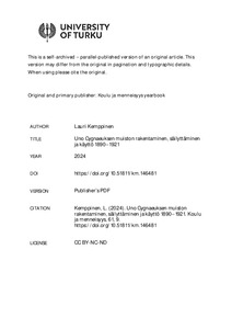 Tässä tutkimuksessa tarkastellaan, miten Uno Cygnaeuksen muisto rakennettiin, kuinka sitä vaalittiin ja millaisiin tarkoituksiin sitä käytettiin vuosina 1890–1921. Hänen maineensa rakentaminen toteutettiin elämäkerrallisten tekstien, historiankirjoituksen, painokuvien ja kipsisten rintakuvien avulla. Cygnaeuksen elämänvaiheet eivät kuitenkaan nousseet kansakoulun oppisisällöiksi. Suurmieselämäkerrat olivat merkittävässä asemassa luotaessa perusteita kansalliselle historiankirjoitukselle ja nationalistisesti sävyttyneelle kehityskertomukselle kaikkialla Euroopassa. Viimeistään 1900-luvun alussa Cygnaeuksesta oli tullut kansakouluväen oma suurmies ja myyttinen Isä, jonka kokemuksiin ja käsityksiin eläytyminen toimi yhteisöä yhdistävänä voimana. Hänen muistonsa julkinen vaaliminen kulminoitui vuonna 1910 järjestettyyn satavuotisjuhlaan. Juhla järjestettiin edistämään kansanopetuksen koulutuspoliittisia tavoitteita, oppivelvollisuuslain valmistelua ja oppilashuoltoon liittyviä ratkaisuja.