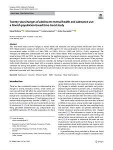 Twenty-year changes of adolescent mental health and substance use : a Finnish population-based time-trend study
