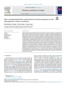 Effect of phosphatidylcholine regioisomerism on lateral segregation of milk sphingomyelin in bilayer membranes