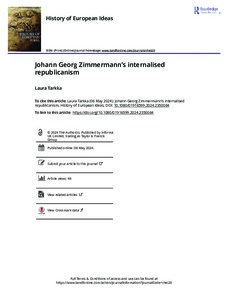 This article draws attention to the transformation of the Swiss physician Johann Georg Zimmermann's (1728-1795) work on national pride. First published as Von dem Nationalstolze in 1758, this work attracted trans-European interest and consequently appeared in substantially revised editions in 1760 and 1768. One notable addition in the new editions was a chapter on national pride felt by the subjects of monarchies, which could be taken as indicating a monarchist turn in Zimmermann's thinking. However, as the article contends, Zimmermann's work can be read not only as a treatise making claims about the national pride of various countries but also as a text which, in so doing, attempted to encourage liberty and patriotic virtue in different societies. As such, it can be interpreted as representing a variation of republicanism that focussed solely on reforming the thinking of individuals. This argument is based on an analysis of the evolution of Zimmermann's work, his correspondence, contemporary reviews, and a set of unpublished draft prefaces. As this evidence indicates, Zimmermann aspired to promote a republican attitude wherever his readers were situated. However, appreciating this 'internalised republicanism' requires that his writing is examined as a process involving the reactions of his expanding audience.
