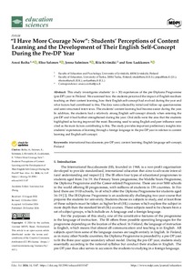 This study investigates students’ (n = 30) experiences of the pre-Diploma Programme (pre-DP) year in Finland. We examined how the students perceived the impact of English-medium teaching on their content learning, how their English self-concept had evolved during the year and what factors had contributed to this. The data were collected by initial and follow-up questionnaires and semi-structured interviews. The students’ content learning had become easier during the year. In addition, the students had a relatively strong English self-concept already when entering the pre-DP and it had further strengthened during the year. Oral skills were the area that the students highlighted as having improved the most. Becoming used to using English and peer influence were cited as the main factors contributing to this. The study provides important preliminary insights into students’ experiences of learning through a foreign language in the pre-DP year in relation to content learning and English self-concept.
