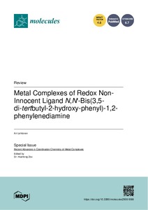 Redox non-innocent ligands react with metal precursors to form complexes where the oxidation states of the ligand and thus the metal atom cannot be easily defined. A well-known example of such ligands is bis(o-aminophenol) N,N '-bis(3,5-di-tertbutyl-2-hydroxy-phenyl)-1,2-phenylenediamine, previously developed by the Wieghardt group, which has a potentially tetradentate coordination mode and four distinct protonation states, whereas its electrochemical behavior allows for five distinct oxidation states. This rich redox chemistry, as well as the ability to coordinate to various transition metals, has been utilized in the syntheses of metal complexes with M2L, ML and ML2 stoichiometries, sometimes supported with other ligands. Different oxidation states of the ligand can adopt different coordination modes. For example, in the fully oxidized form, two N donors are sp(2)-hybridized, which makes the ligand planar, whereas in the fully reduced form, the sp(3)-hybridized N donors allow the formation of more flexible chelate structures. In general, the metal can be reduced during complexation, but redox processes of the isolated complexes typically occur on the ligand. Combination of this non-innocent ligand with redox-active transition metals may lead to complexes with interesting magnetic, electrochemical, photonic and catalytic properties.