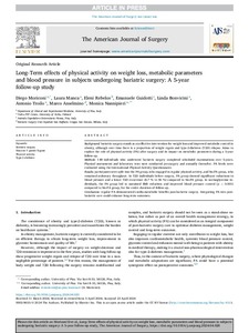 Long-Term effects of physical activity on weight loss, metabolic parameters and blood pressure in subjects undergoing bariatric surgery : A 5-year follow-up study