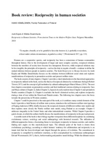 Reciprocity in Human Societies. From Ancient Times to the Modern Welfare State. Palgrave Macmillan 2019