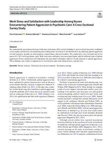 Work Stress and Satisfaction with Leadership Among Nurses Encountering Patient Aggression in Psychiatric Care: A Cross-Sectional Survey Study