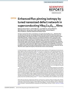 Enhanced flux pinning isotropy by tuned nanosized defect network in superconducting YBa2Cu3O6+x films
