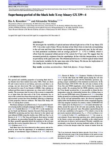 We investigate the variability of optical and near-infrared light curves of the X-ray binary GX 339-4 on a time-scale of days. We use the data in four filters from six intervals corresponding to the soft state and from four intervals corresponding to the quiescent state. In the soft state, we find prominent oscillations with an average period P = 1.772 ± 0.003 d, which is offset from the measured orbital period of the system by 0.7 per cent. We suggest that the measured periodicity originates from the superhumps. In line with this interpretation, we find no periodicity in the quiescent state. The obtained period excess ɛ is below typical values found for cataclysmic variables for the same mass ratio of the binary. We discuss the implications of this finding in the context of superhump theory.