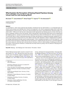 What Explains the Perception of Having Shared Practices Among School Staff for Anti-bullying Work?