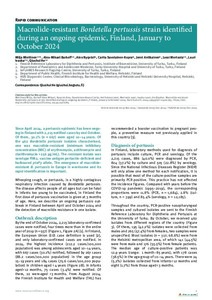 Macrolide-resistant Bordetella pertussis strain identified during an ongoing epidemic, Finland, January to October 2024