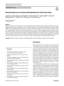 Eating is inherently social for humans. Yet, most neuroimaging studies of appetite and food-induced reward have focused on studying brain responses to food intake or viewing pictures of food alone. We used functional magnetic resonance imaging (fMRI) to measure haemodynamic responses to “vicarious” feeding. The subjects (n = 97) viewed series of short videos representing naturalistic episodes of social eating intermixed with videos without feeding/appetite-related content. Viewing the vicarious feeding (versus control) videos activated motor and premotor cortices, thalamus, and dorsolateral prefrontal cortices, consistent with somatomotor and affective engagement. Responses to the feeding videos were negatively correlated with the participants’ body mass index. Altogether these results suggest that seeing others eating engages the corresponding motor and affective programs in the viewers’ brain, potentially increasing appetite and promoting mutual feeding.