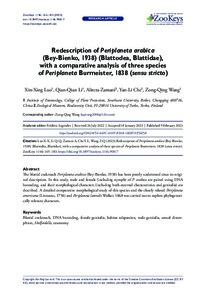 Redescription of Periplaneta arabica (Bey-Bienko, 1938) (Blattodea, Blattidae), with a comparative analysis of three species of Periplaneta Burmeister, 1838 (sensu stricto)