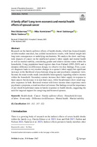 A family affair? Long-term economic and mental health effects of spousal cancer