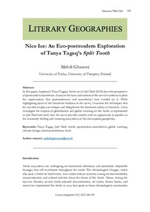In this paper, I approach Tanya Tagaq’s Arctic novel Split Tooth (2018) from the perspectives of postmodern ecocriticism. I study how the novel provides readers with an opportunity to ponder on the constantly shifting and mutating ecosystems of the Arctic, while exposing human centeredness and sovereignty to decide over nature. Through a close reading of the novel, I explore a number of metanarratives, including age-old imaginations of the Arctic, and examine the ways that Tagaq employs to raise incredulity toward such established mediated assumptions of the circumpolar world. I also show how the text informs readers of indigenous peoples’ mininarratives with its revisionist accounts and challenges the monolithic conceptualization of Arctic identity. Moreover, I examine the peripheral positions of nonhuman species living in the Arctic and show how the novelist makes her text a space of alliance between human and other-than-human.