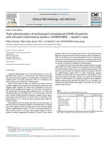 ‘Early administration of tocilizumab in hospitalized COVID-19 patients with elevated inflammatory markers; COVIDSTORM’ – Author's reply