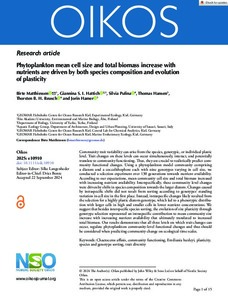 Phytoplankton mean cell size and total biomass increase with nutrients are driven by both species composition and evolution of plasticity