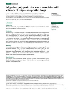Migraine polygenic risk score associates with efficacy of migraine-specific drugs