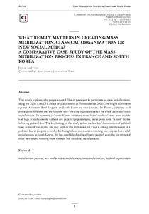 What Really Matters in Creating Mass Mobilization, Classical Organization or New Social Media? – A Comparative Case Study of the Mass Mobilization Process in France and South Korea