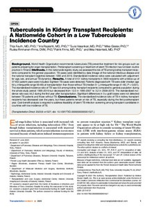 Tuberculosis in Kidney Transplant Recipients: A Nationwide Cohort in a Low Tuberculosis Incidence Country