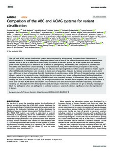 The ABC and ACMG variant classification systems were compared by asking mainly European clinical laboratories to classify variants in 10 challenging cases using both systems, and to state if the variant in question would be reported as a relevant result or not as a measure of clinical utility. In contrast to the ABC system, the ACMG system was not made to guide variant reporting but to determine the likelihood of pathogenicity. Nevertheless, this comparison is justified since the ACMG class determines variant reporting in many laboratories. Forty-three laboratories participated in the survey. In seven cases, the classification system used did not influence the reporting likelihood when variants labeled as "maybe report" after ACMG-based classification were included. In three cases of population frequent but disease-associated variants, there was a difference in favor of reporting after ABC classification. A possible reason is that ABC step C (standard variant comments) allows a variant to be reported in one clinical setting but not another, e.g., based on Bayesian-based likelihood calculation of clinical relevance. Finally, the selection of ACMG criteria was compared between 36 laboratories. When excluding criteria used by less than four laboratories (<10%), the average concordance rate was 46%. Taken together, ABC-based classification is more clear-cut than ACMG-based classification since molecular and clinical information is handled separately, and variant reporting can be adapted to the clinical question and phenotype. Furthermore, variants do not get a clinically inappropriate label, like pathogenic when not pathogenic in a clinical context, or variant of unknown significance when the significance is known.