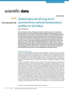 Global data set of long-term summertime vertical temperature profiles in 153 lakes