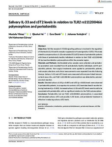Conclusion: Periodontitis, but not TLR2 rs111200466 polymorphism, is associated with elevated salivary sST2 and possibly IL-33 levels, and periodontal treatment is effective in reducing salivary sST2 levels.