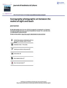Scanographs are photographs made using a scanner, and they have become increasingly present in contemporary photographic art in the expanded field. In this article, I examine the artistic processes of three artists working with scanners and analyze their works through their relationships with the senses of sight and touch. These works open up spaces for a haptic gaze, where the tactile qualities of the working processes of the artists are mediated through the images. I use theoretical sources centering on sight and touch, presence and absence, analogue and digital to suggest ways of considering these qualities not as opposing characteristics but rather as simultaneous polarities.