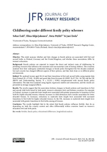 This study assesses whether and how changes in family policies are associated with first and second births in Finland, Germany and the United Kingdom, and whether these associations differ by women's education.