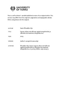 Kirjoituksen tarkoituksena on tarkastella sitä, miten etäopetukseen siirtyminen on mahdollista ja miten etäopetukseen siirtyminen vaikuttaa lapsen oikeuksien toteutumiseen ja lapsen edun arviointiin. Erityisesti kirjoituksessa paneudutaan siihen, että millaisia haasteita etäkoulun aikana liittyy lapsen oikeuteen turvalliseen oppimisympäristöön ja sen toteutumiseen, sekä miten haasteet vaikuttavat lapsen edun toteutumiseen etäkoulussa. Lisäksi pohditaan sitä, miten näihin haasteisiin voitaisiin tulevaisuudessa varautua, jotta tulevaisuudessa mahdolliseen etäkouluun siirtyminen voitaisiin toteuttaa puuttumalla lapsen oikeuksiin mahdollisimman vähänlaisesti. Kirjoituksessa halutaan tuoda esille erityisesti se, että turvallinen oppimisympäristö on kytköksissä siihen, miten lapsen oikeus opetukseen toteutuu, minkä takia myös lapsen oikeutta opetukseen ja sen sisältöä tarkastellaan lähemmin. Lisäksi kirjoituksessa tarkastellaan turvallista oppimisympäristöä ja sen toteutumista koulutuksen järjestäjän velvollisuuksien näkökulmasta vastaten kysymykseen vaikuttaako etäkoulu koulutuksen järjestäjän velvollisuuteen ja mahdollisuuksiin turvata turvallinen oppimisympäristö, sekä miten velvollisuudesta huolehtiminen on mahdollista ennakollisesti tai akuutissa tilanteessa.