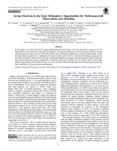 Jovian Electrons in the Inner Heliosphere : Opportunities for Multi-spacecraft Observations and Modeling