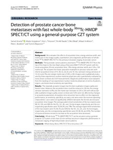 Conclusion: Whole-body 99mTc-HMDP SPECT/CT can be acquired using a general-purpose CZT system in less than 20 min without any loss in diagnostic performance in metastasis staging of high-risk prostate cancer patients.