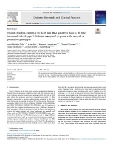 Finnish children carrying the high-risk HLA genotype have a 45-fold increased risk of type 1 diabetes compared to peers with neutral or protective genotypes