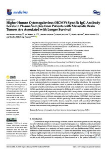 Higher Human Cytomegalovirus (HCMV) Specific IgG Antibody Levels in Plasma Samples from Patients with Metastatic Brain Tumors Are Associated with Longer Survival