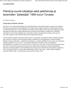 Pieniä ja suuria tulipaloja sekä paloherroja ja tavaroiden ”pelastajia” 1600-luvun Turussa