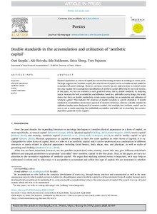 Physical appearance as a form of capital has received increasing attention in sociology in recent years. The logic suggests that ‘aesthetic capital’, like other forms of capital, can be accumulated and utilised in economic and social exchange. However, previous research has not paid attention to societal norms that may regulate the accumulation and utilisation of ‘aesthetic capital’ differently for men and women. In this paper, we turn our attention to such gendered norms, that is, double standards, by analysing unique measures for both accumulation and utilisation based on a split-ballot survey design. Our study shows that there are double standards in certain norms regarding the accumulation and utilisation of ‘aesthetic capital’. This indicates the existence of double standards is context dependent. A double standard in accumulation means more approval of women's behaviour, whereas a double standard in utilisation implies more disapproval of women's conduct. We conclude that ‘aesthetic capital’ can be seen as not so much something that individuals accumulate and utilise but as something that context-dependent gendered norms regulate.