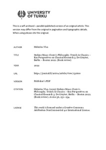 Stefano Maso: Cicero’s Philosophy. Trends in Classics – Key Perspectives on Classical Research 3. De Gruyter, Berlin – Boston 2022. (Book review)