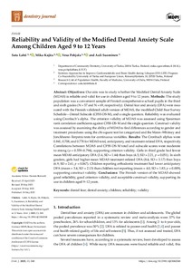 Conclusions: The Finnish version of the MDAS showed good reliability, good criterion validity, and acceptable construct validity, supporting its use in children aged 9-12 years.
