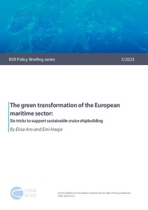 This report explores the current state of sustainable industrial transformation in the maritime industry by mirroring the increasing number of respective policies, strategies and regulations with the views of the industry representatives. The report is divided into two parts; the first one looks into the policies, regulations and incentives that drive green transformation in the maritime industry. The second part builds on empirical data collected among maritime industry firms and industry association representatives, highlighting the opportunities and challenges currently experienced within the business field concerning green transition. Building on the findings in both parts, the report concludes with recommendations for policymakers—the six tricks—to better pursue and guide sustainability transformation in the maritime industry in general and in cruise shipbuilding in particular.