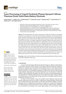 Laser Processing of Liquid Feedstock Plasma-Sprayed Lithium Titanium Oxide Solid-State-Battery Electrode