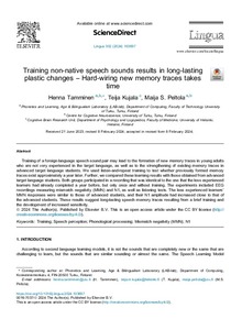 Training of a foreign language speech sound pair may lead to the formation of new memory traces in young adults who are not very experienced in the target language, as well as to the strengthening of existing memory traces in advanced target language students. We used listen-and-repeat training to test whether previously formed memory traces exist approximately a year later. Further, we compared these learning results with those obtained from advanced target language students. Both groups participated in a recording that was identical to the one that the less experienced learners had already completed a year before, but only once and without training. The experiments included EEG recordings measuring mismatch negativity (MMN) and N1, as well as listening tests. The less experienced learners’ MMN responses were similar to those of advanced students, and their N1 amplitude had increased close to that of the advanced students. These results suggest long-lasting speech memory traces resulting from a brief training and the development of increased sensitivity.
