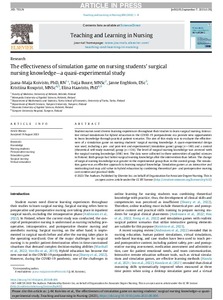 Student nurses need diverse learning experiences throughout their studies to learn surgical nursing. Interactive virtual simulations for hybrid education in the COVID-19 postpandemic era provide new opportunities to learn knowledge through practical patient scenarios. The aim of this study was to evaluate the effectiveness of a simulation game on nursing students’ surgical nursing knowledge. A quasi-experimental design was used, including a pre- and post-test and experimental (simulation game) group (n = 140) and a control (theoretical self-study material) group (n = 136). The level of surgical nursing knowledge was assessed with the surgical nursing knowledge (SNK) test. The data were collected in three universities of applied sciences in Finland. Both groups had better surgical nursing knowledge after the intervention than before. The change of surgical nursing knowledge was greater in the experimental group than in the control group. The simulation game was an effective approach to learning surgical knowledge. Simulation games as an interactive and motivating tool may add value in hybrid education by combining theoretical pre- and postoperative nursing care content and practical skills.