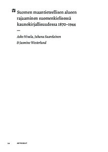 Jäsennämme käsittelyn alueittain keskittyen Länsi-Suomeen, Karjalaan ja Lappiin. Jokaisen käsitellyn alueen kohdalla tulee esiin, kuinka 1800-luvun lopun ja 1900-luvun alun kaunokirjallisuus pyrki rakentamaan kuvaa alueellisesti yhtenäisestä Suomesta. Varsinkin Karjala ja Lappi esiintyvät teoksissa paitsi idealisoituna luonnontilana myös ongelmallisina alueina, joiden kuulumista Suomelle piti erikseen perustella, sillä alueella asui myös karjalaista ja saamelaista väestöä. Aineistossamme nousi esiin, että historiallinen romaani on erityisen paikkatiheä ja tilallinen lajityyppi.