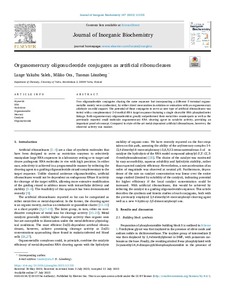 Two oligonucleotide conjugates sharing the same sequence but incorporating a different 5′-terminal organometallic moiety were synthesized, by either direct mercuration in solution or oximation with an organomercury aldehyde on solid support. The potential of these conjugates to serve as new type of artificial ribonucleases was tested with a complementary 2´-O-methyl-RNA target sequence featuring a single cleavable RNA phosphodiester linkage. Both organomercury oligonucleotides greatly outperformed their metal-free counterparts as well as the previously reported small molecule organomercury RNA cleaving agent in catalytic activity, providing an important proof-of-concept. Compared to state-of-the-art metal-dependent artificial ribonucleases, however, the observed activity was modest.