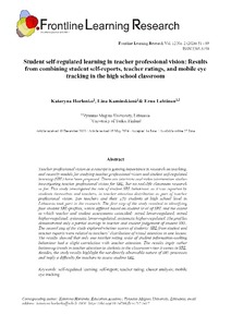 Teacher professional vision as a concept is gaining importance in research on teaching, and recently models for studying teacher professional vision and student self-regulated learning (SRL) have been proposed. There are interview and video intervention studies investigating teacher professional vision for SRL, but no real-life classroom research so far. This study investigated the role of student SRL behaviour, as it was reported by students themselves and teachers, in teacher attention distribution as part of teacher professional vision. Ten teachers and their 158 students at high school level in Lithuania took part in the research. The first step of the study resulted in identifying four student SRL-profiles, which differed based on student level of SRL and the extent to which teacher and student assessments coincided: mixed lower-regulated, mixed higher-regulated, systematic lower-regulated, systematic higher-regulated. The profiles demonstrated only a partial overlap in teacher and student judgement of student SRL. The second step of the study explored whether scores of students’ SRL from student and teacher reports were related to teachers’ distribution of visual attention in one lesson. The results showed that only one teacher rating scale of student information-seeking behaviour had a slight correlation with teacher attention. The results imply rather bottom-up trends in teacher attention to students in the classroom when it comes to SRL. Besides, the study results highlight the not directly observable nature of SRL processes and imply a difficulty for teachers to assess student SRL.