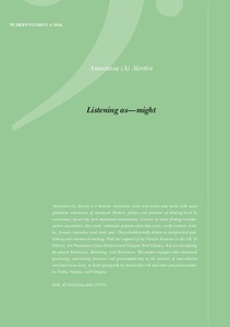 In the recent neoliberal politico-theoretical discourses, listening has become a buzzword alongside “relational,” “care,” and “togetherness.” Simultaneously, critical day-to-day practicing of these notions remains in urgent demand, specifically directed at those social groups that live in structural privilege which entitles them to shield themselves from all the intersectionally vulnerable, screaming, perpetually and violently silenced voices. In this context, (non-aural) listening principles might (still) need to be attended to. Relatedly, the following offering is a found poem that looks for some of these principles in the feminist new materialist and musicological work of Taru Leppänen, who has been striving to listen better, to listen well.