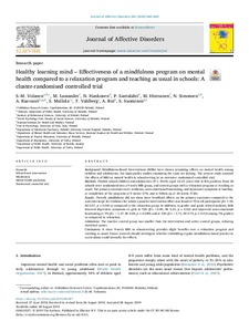 Healthy learning mind - Effectiveness of a mindfulness program on mental health compared to a relaxation program and teaching as usual in schools: A cluster-randomised controlled trial