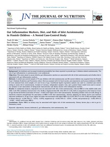 Objectives: This study aimed to assess whether gut inflammation markers are associated with risk of islet autoimmunity and whether diet is associated with gut inflammation markers.
