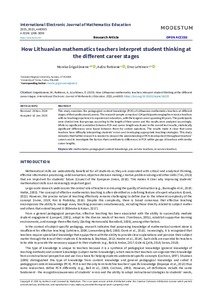How Lithuanian mathematics teachers interpret student thinking at the different career stages