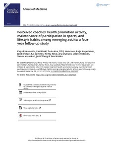 Perceived coaches' health promotion activity, maintenance of participation in sports, and lifestyle habits among emerging adults : a four-year follow-up study