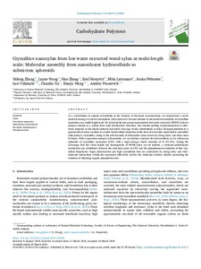 Crystalline nanoxylan from hot water extracted wood xylan at multi-length scale : Molecular assembly from nanocluster hydrocolloids to submicron spheroids